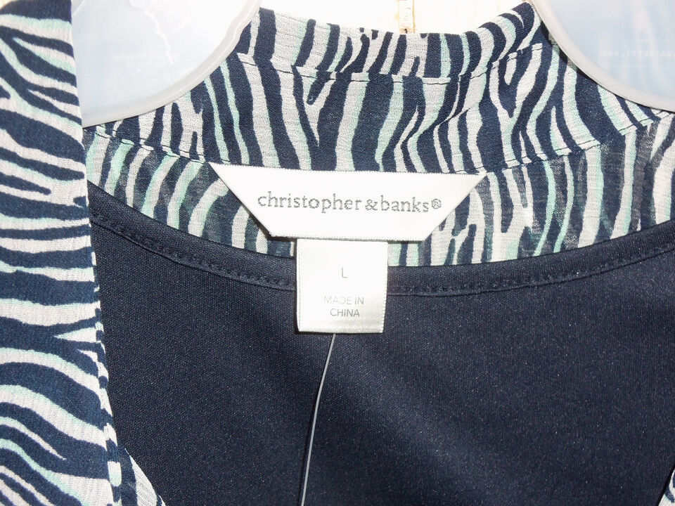 NWT WOMENS christopher & banks ZEBRA STRIPE BLOUSE & TANK TOP SET SIZE L