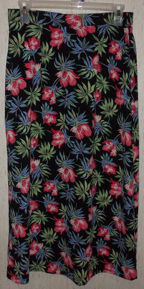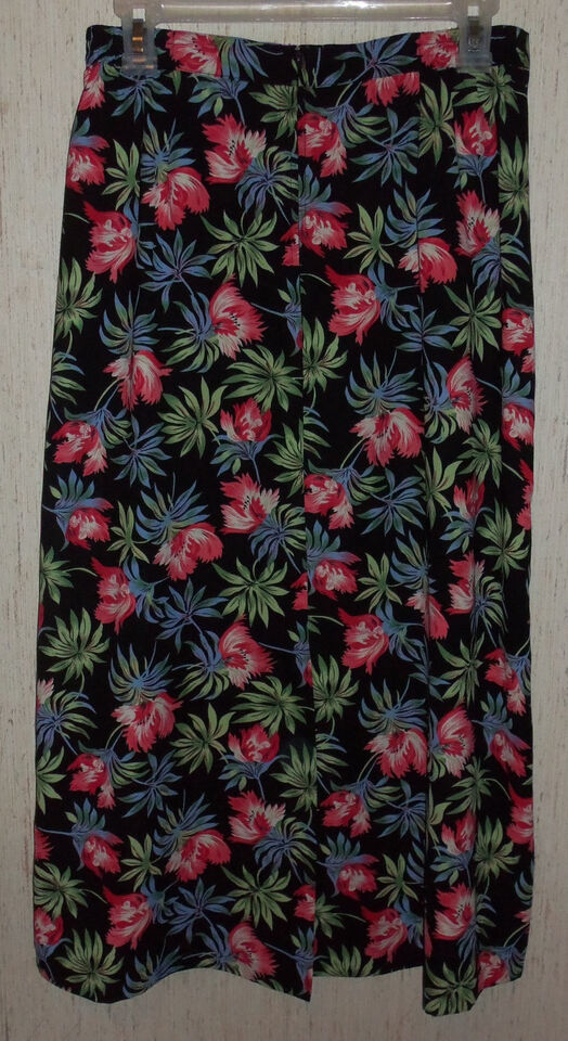 EXCELLENT WOMENS SAG HARBOR PETITE BLACK W/ FLORAL PRINT SKIRT SIZE PS