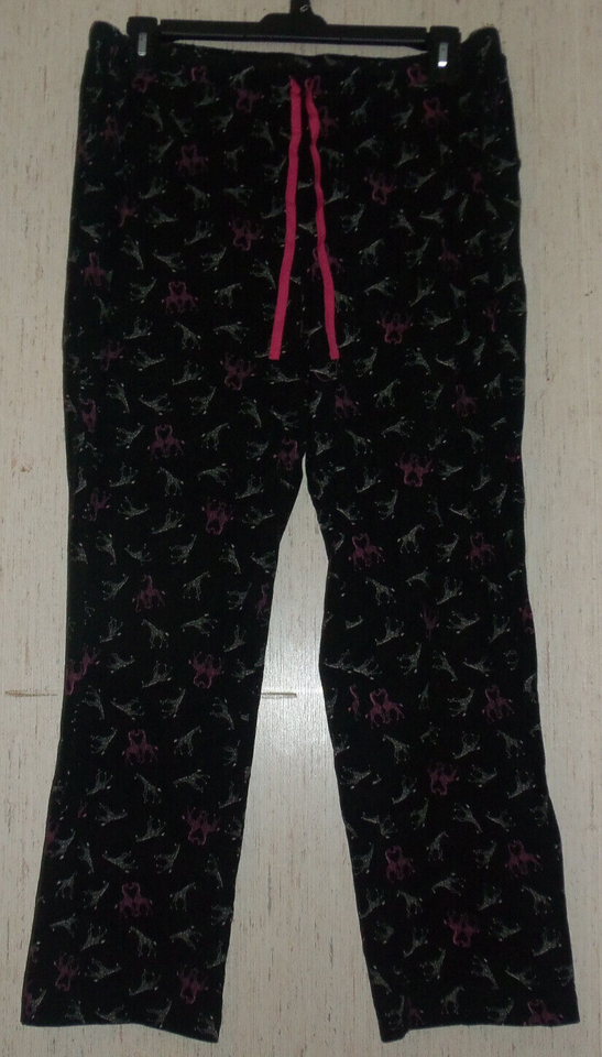 EXCELLENT WOMENS Cuddl Duds BLACK W/ GIRAFFES KNIT PAJAMA / LOUNGE PANT SIZE XL