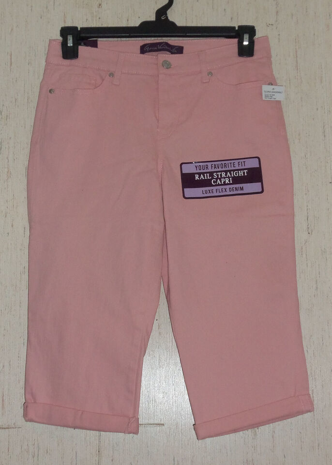 NWT WOMENS GLORIA VANDERBILT PINK LUXE FLEX DENIM RAIL STRAIGHT CAPRI SIZE 10P
