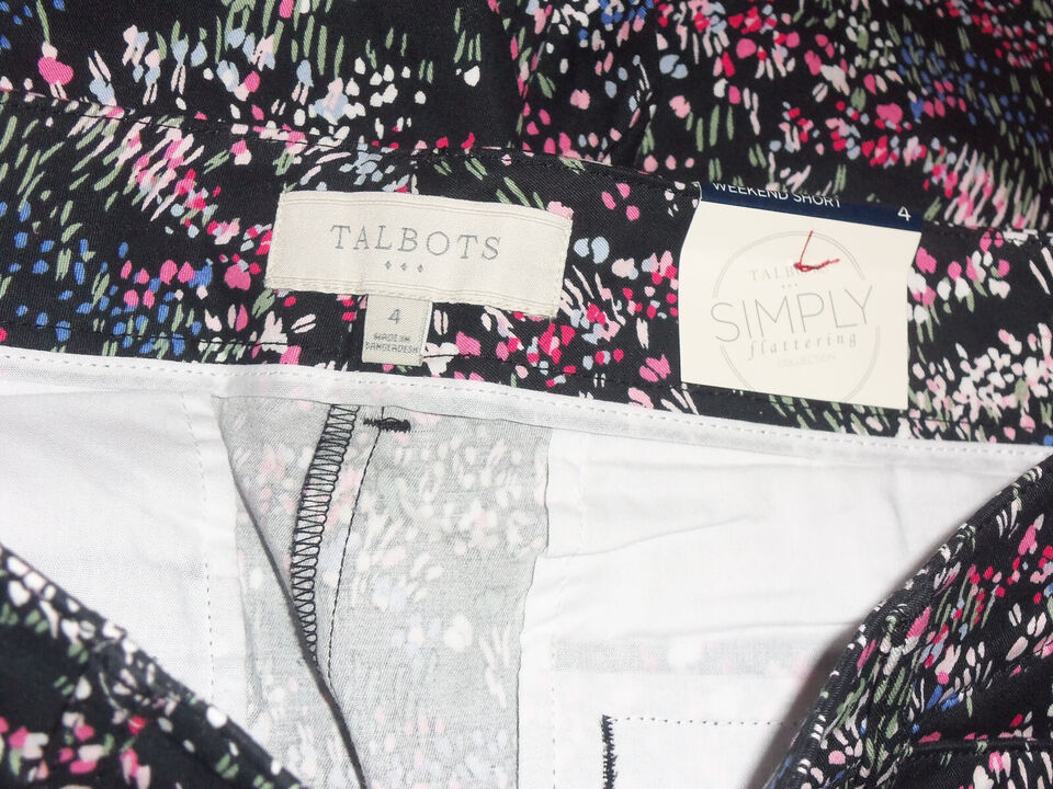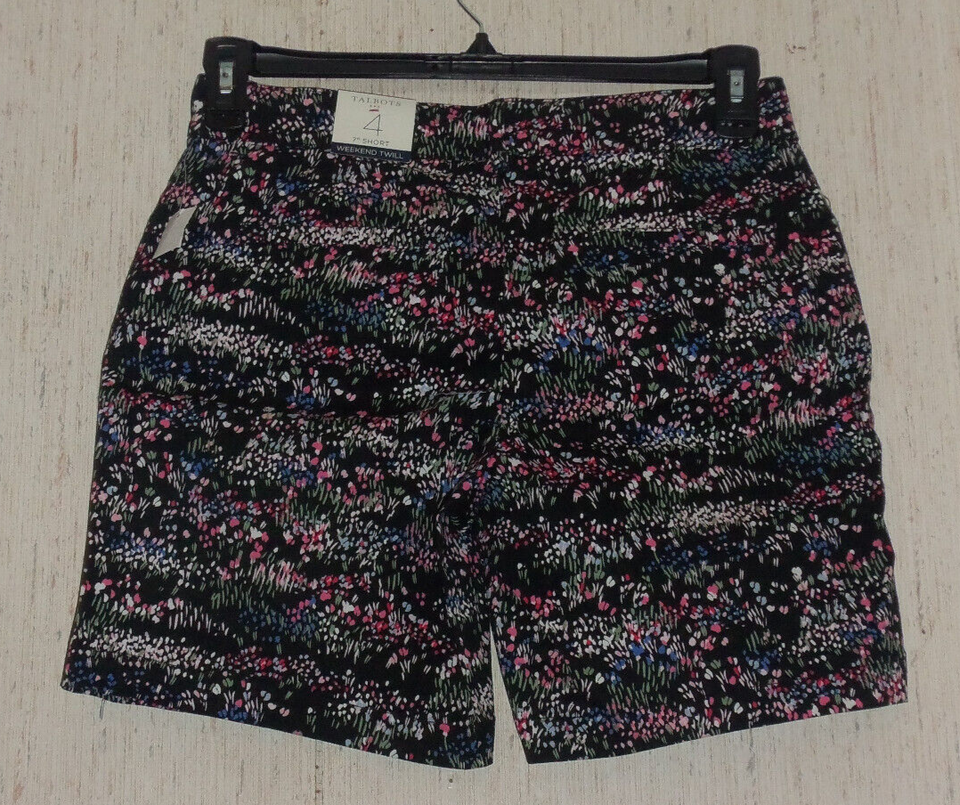 NWT WOMENS Talbots BLACK W/ FLORAL PRINT 7" WEEKEND TWILL SHORT SIZE 4