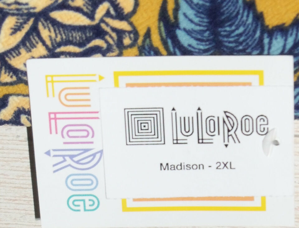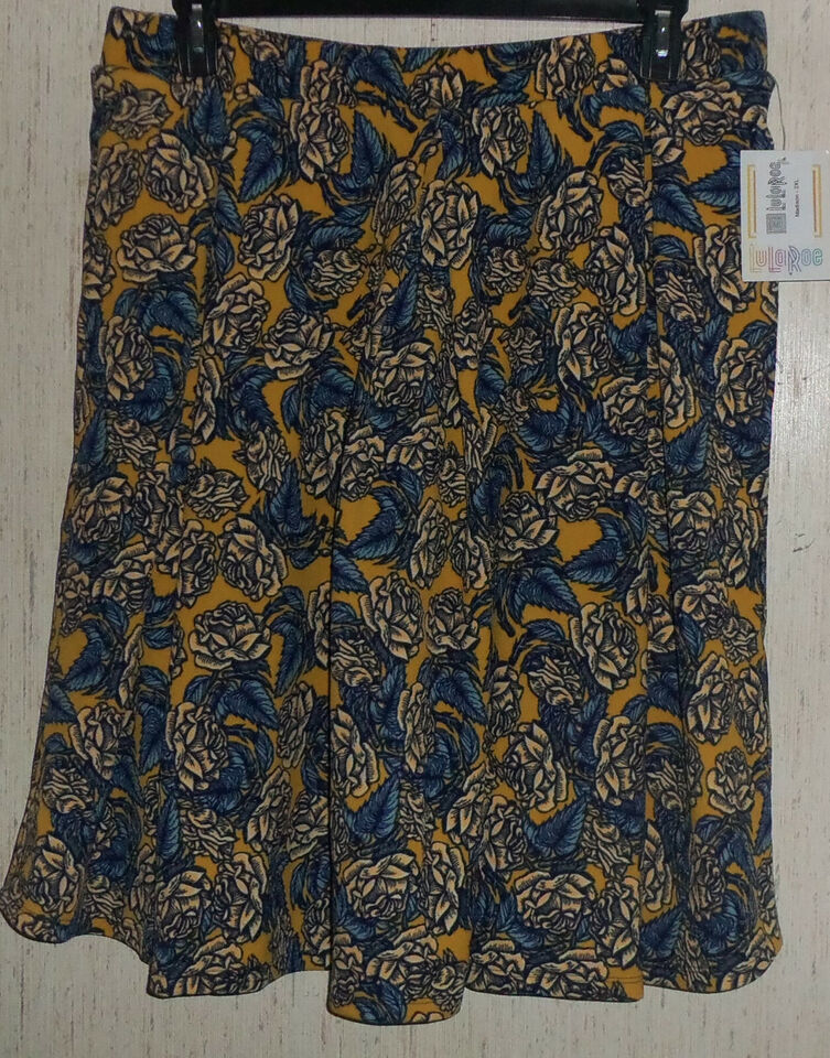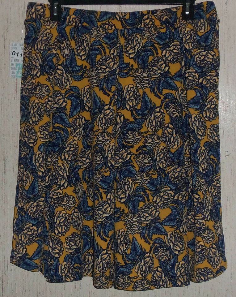 NWT WOMENS LuLaRoe Madison BLUES & GOLDS ROSES PRINT PULL ON KNIT SKIRT SIZE 2XL