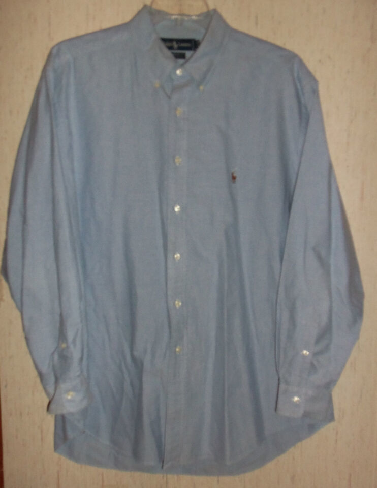 EXCELLENT MENS Ralph Lauren "YARMOUTH" BLUE OXFORD SHIRT SIZE 17 1/2 - 35