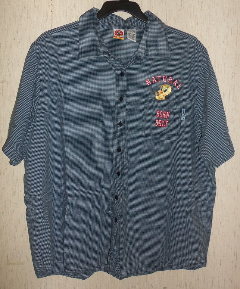 EXCELLENT WOMENS TWEETY "NATURAL BORN BRAT" GINGHAM CHECK BLOUSE SIZE 22W/24W