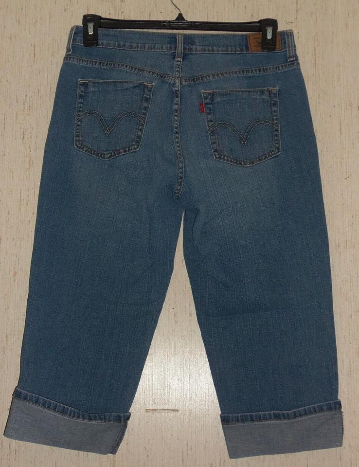 EXCELLENT WOMENS Levi's 515 DISTRESSED DENIM CUFFED CAPRI SIZE 10