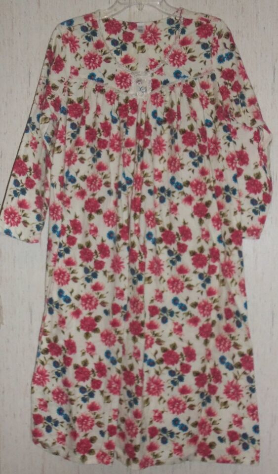 EXCELLENT WOMENS FLORAL PRINT FLANNEL NIGHTGOWN SIZE S