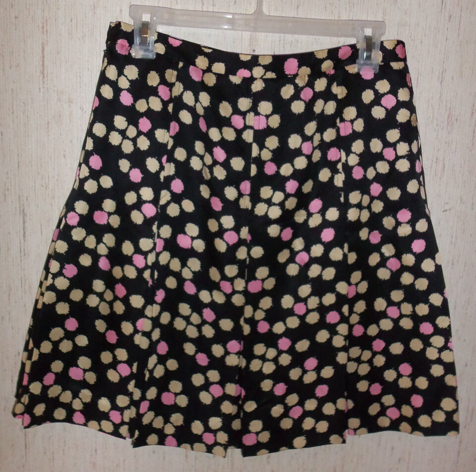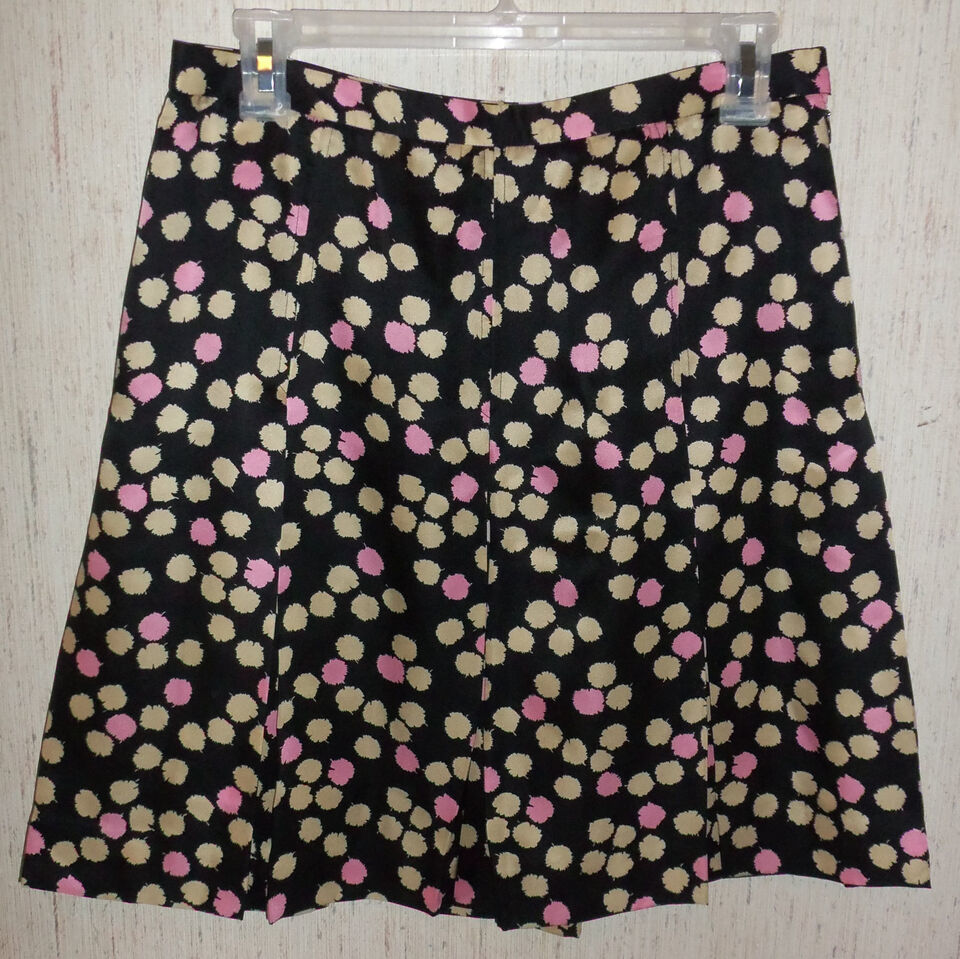 EXCELLENT WOMENS J.CREW 100% SILK BLACK W/ PRINT PLEATED LINED SKIRT SIZE 6P