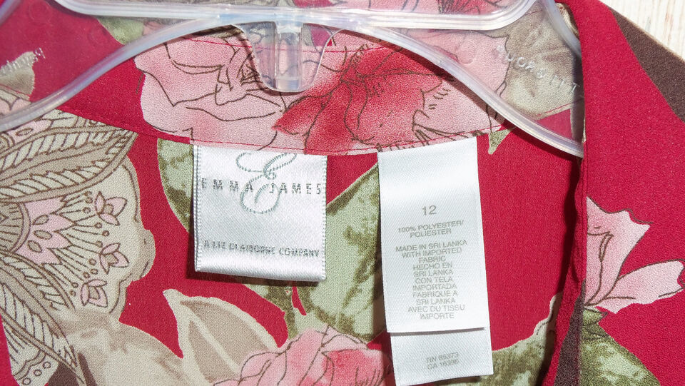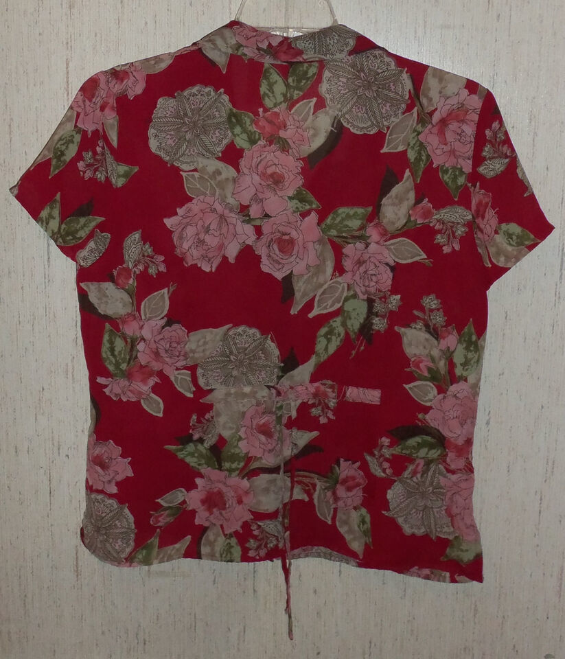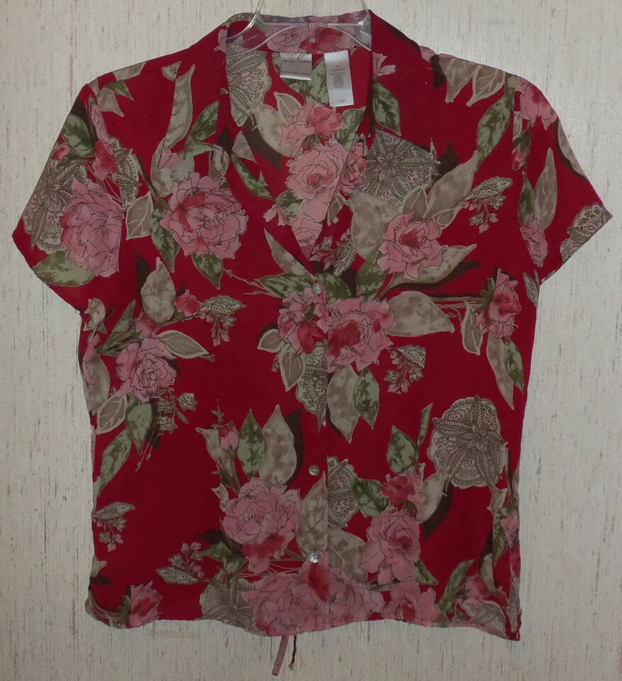 NEW WOMENS EMMA JAMES RED W/ ROSES PRINT SEMI SHEER BLOUSE SIZE 12