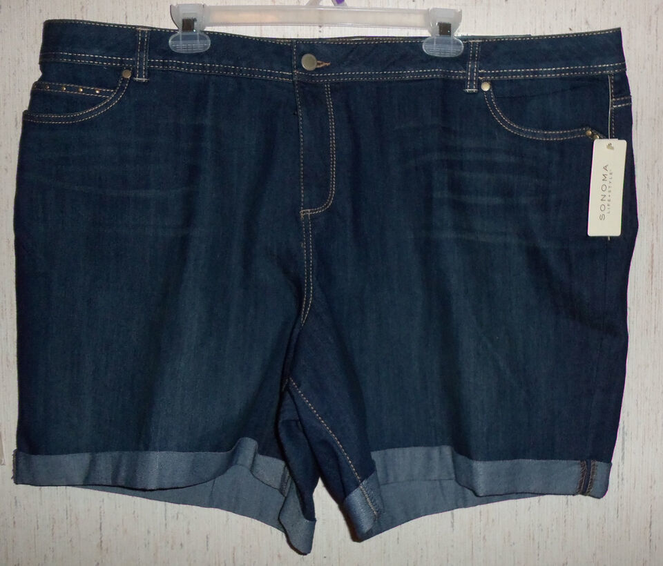 NWT WOMENS $40 SONOMA modern fit DARK WASH DENIM WALKING SHORTS SIZE 24W