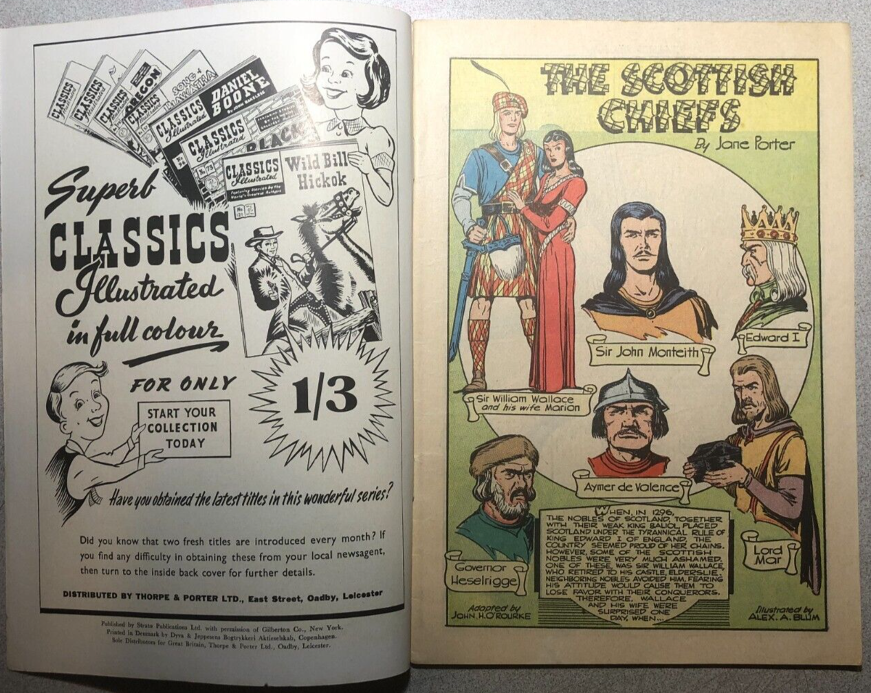 CLASSICS ILLUSTRATED #39 The Scottish Chiefs (HRN 126) UK comics edition VG/VG+