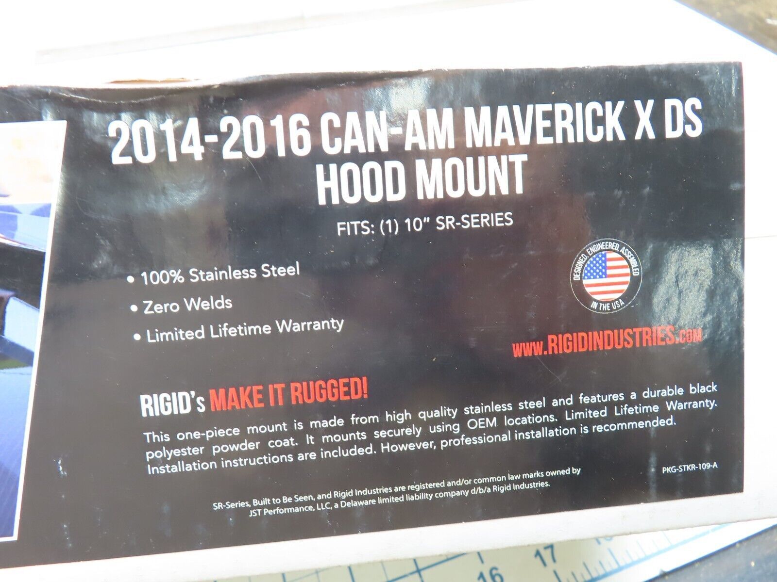 Rigid Industries 46549 Hood Light Bar Mount Maverick X DS 14-16 for 10" SR