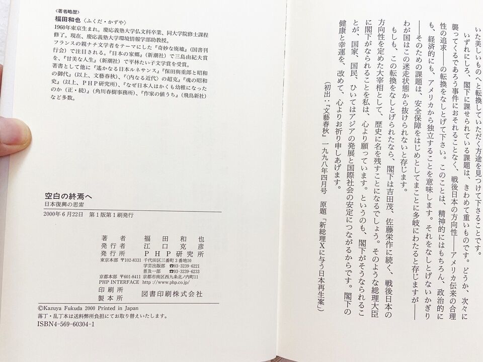 Kūhaku no shūen e: Nihon fukkō no shisaku (Japanese Edition), Hardcover, 2000