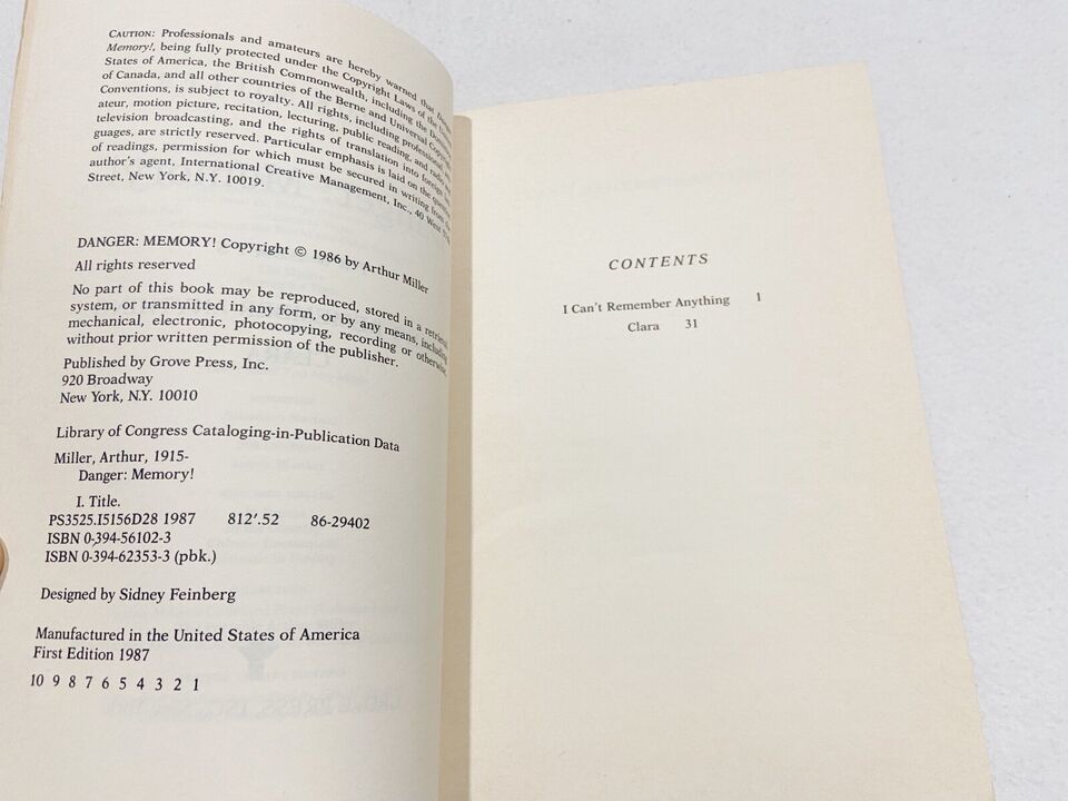(First Edition) Arthur Miller Danger Memory Play, PB, 1987