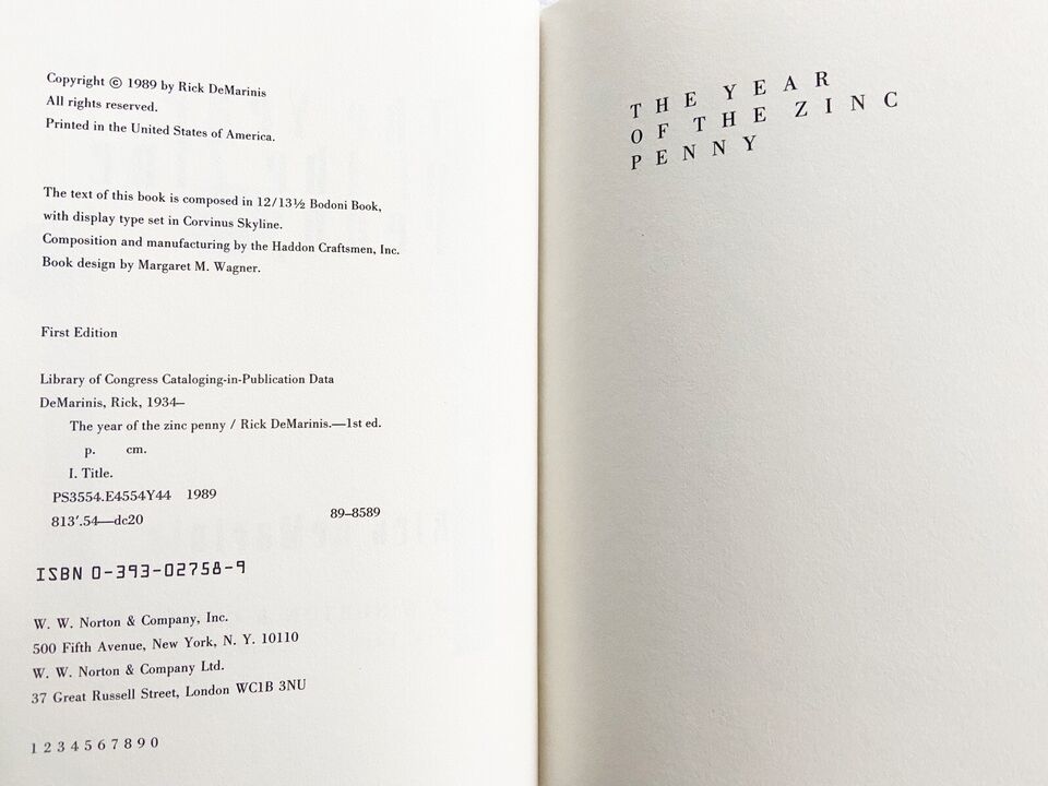 (First Edition) The Year of the Zinc Penny by Rick DeMarinis (1989, Hardcover) added to cart.