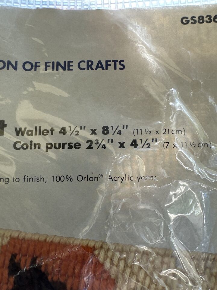 Vintage 80s Plastic Canvas Needlepoint Kit For Sunset Wallet & Coin Purse