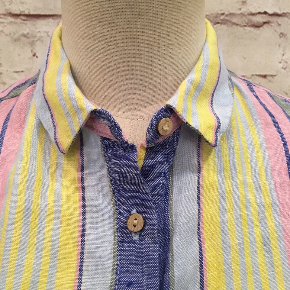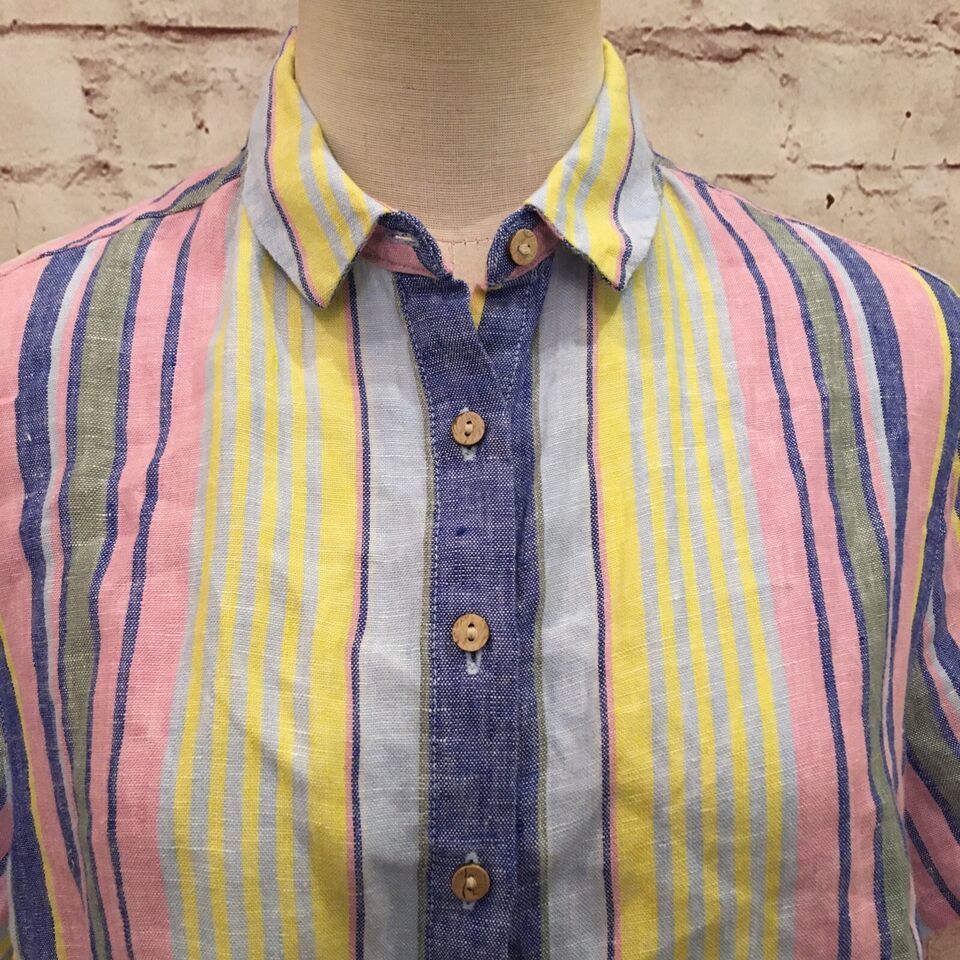 C & C California Linen Boxy Crop Shirt Wood Buttons Summer Stripes Women XS