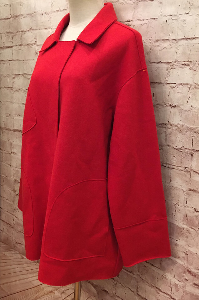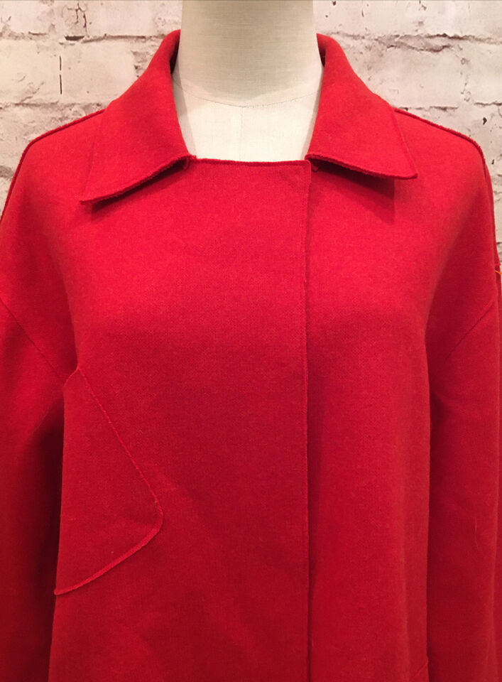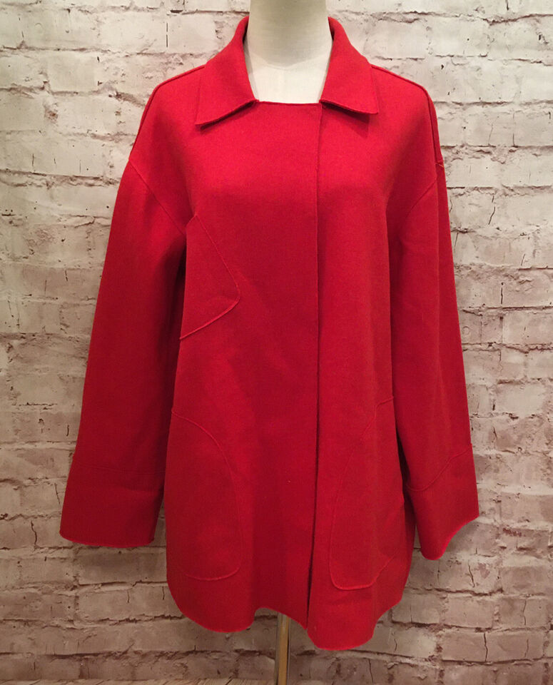 GISPA Womens Red Sweater Knit Jacket Lagenlook Wool Nylon Blend 3/4 Sleeve Sz L