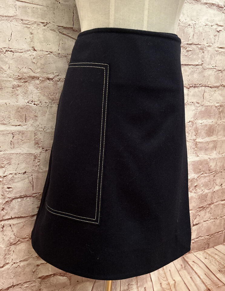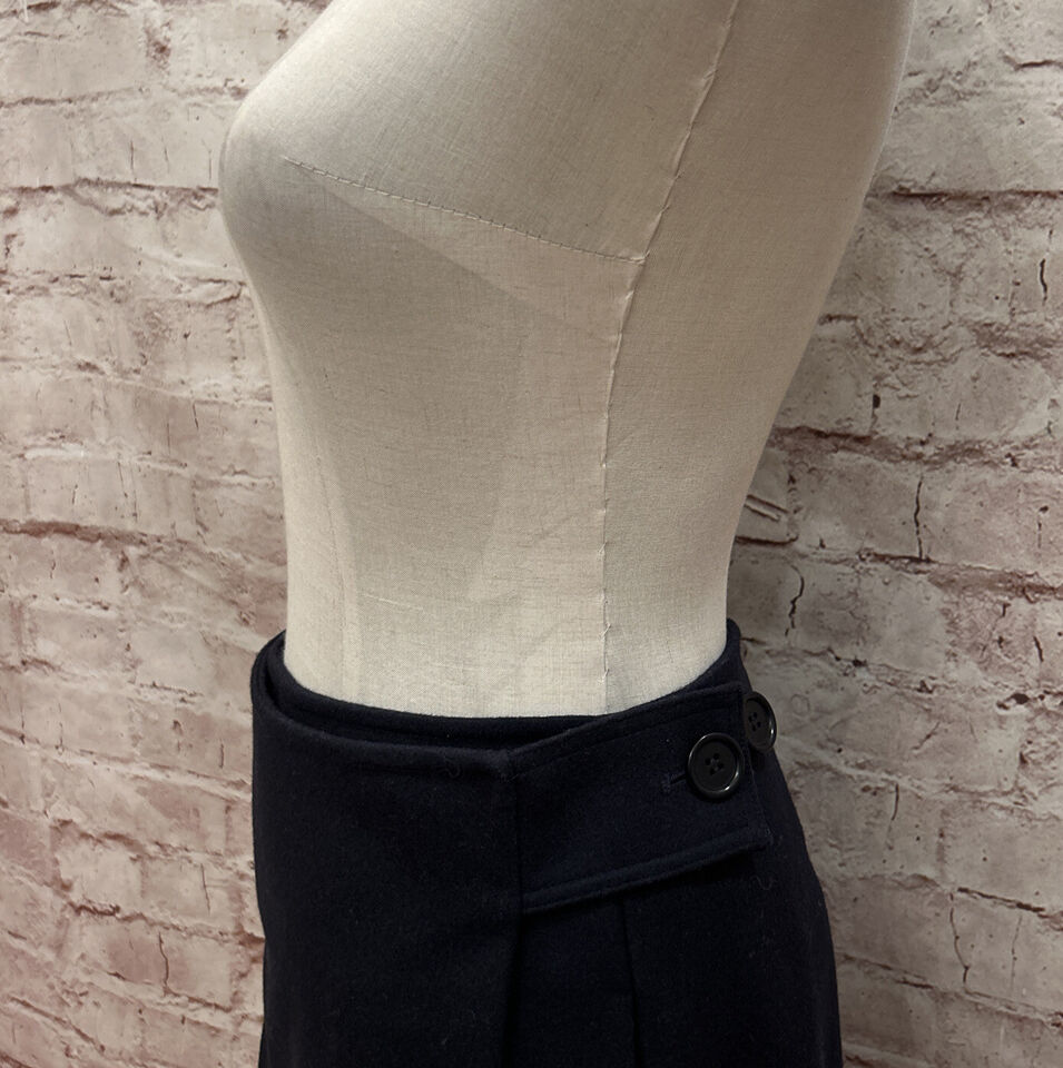 COS Womens Wool Blend Wrap Skirt Side Button Dark Blue Contrast Stitch Pocket 42