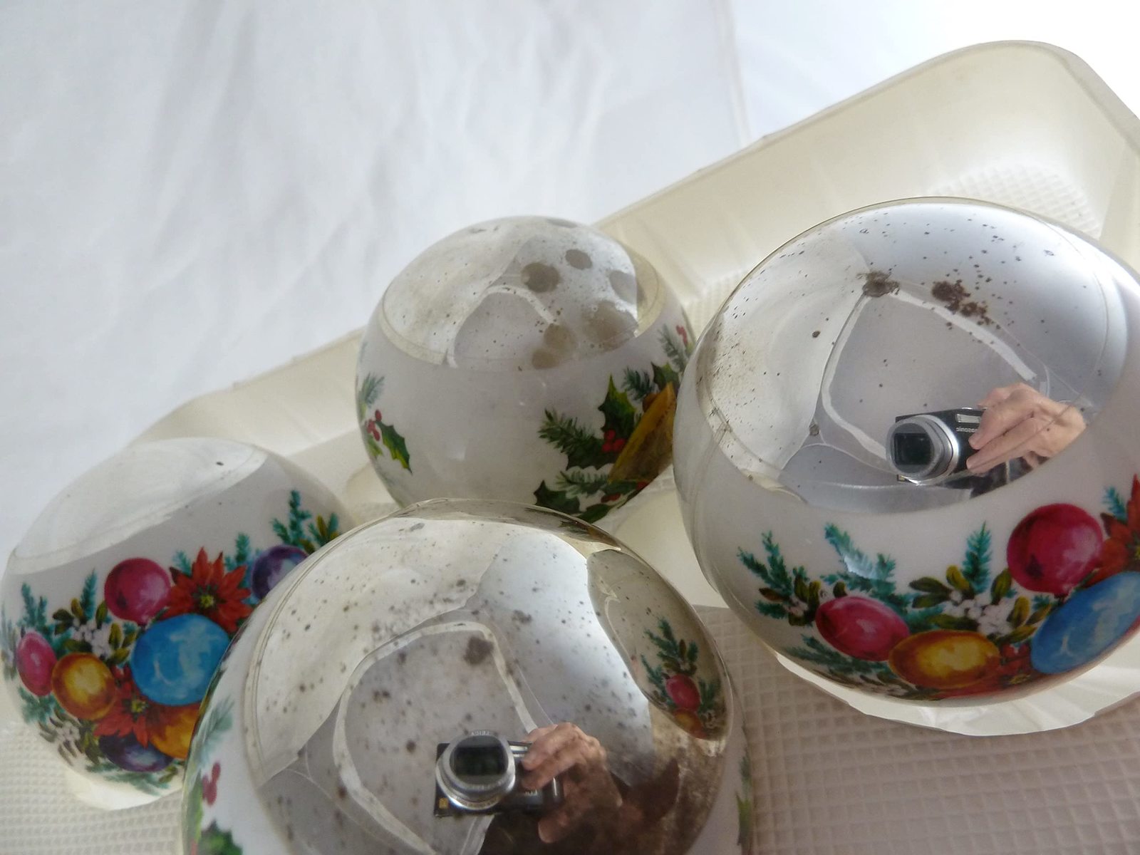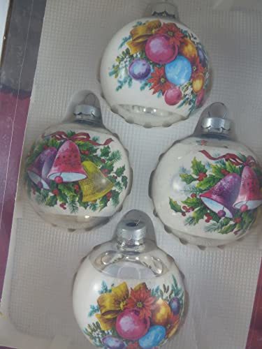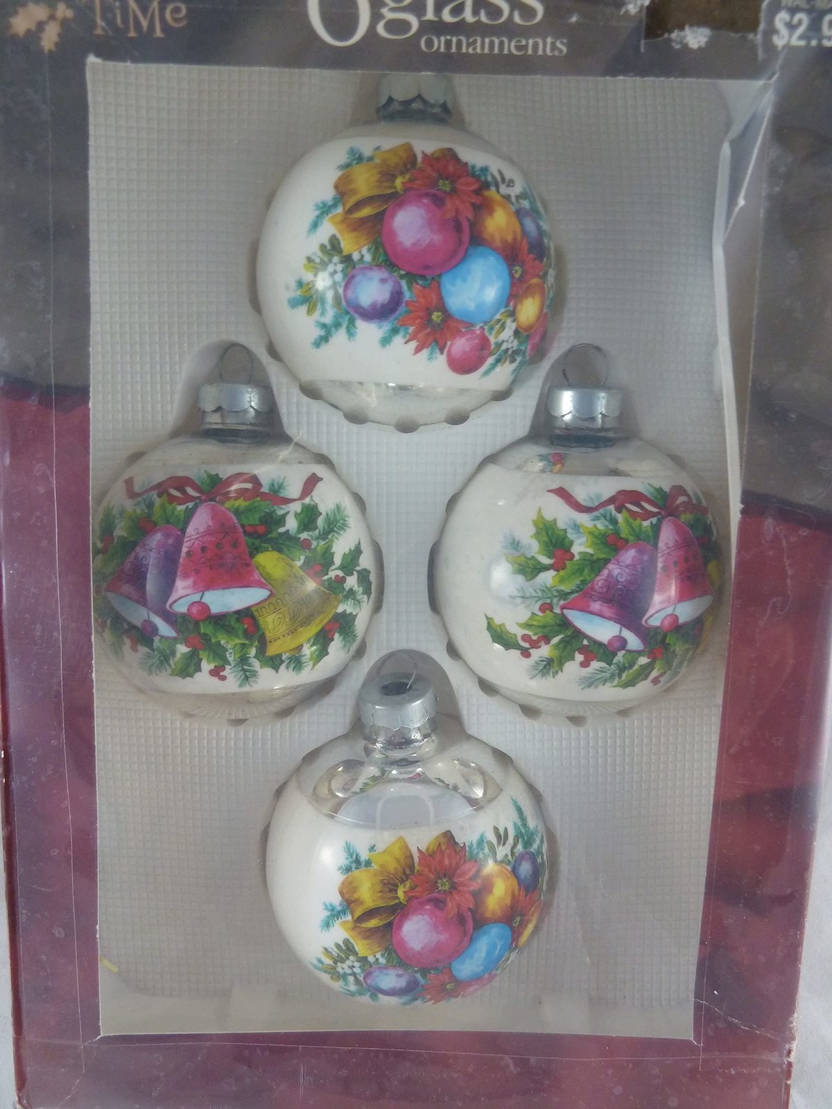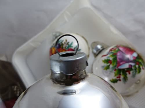 Vintage European Glass Christmas Ornaments 2.5" Set of 4 White and Silver with M