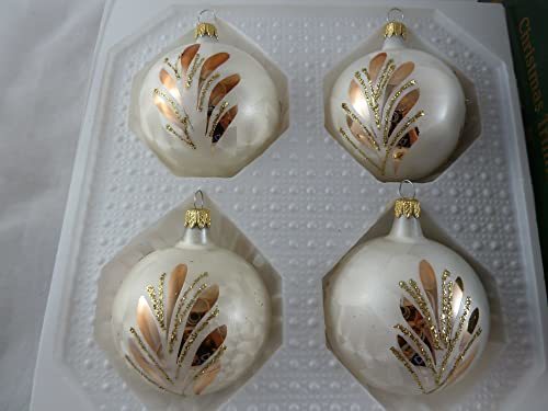 Vintage Christmas Trimmeries Hand Decorated Glass Christmas Ball Ornaments White