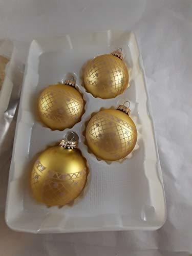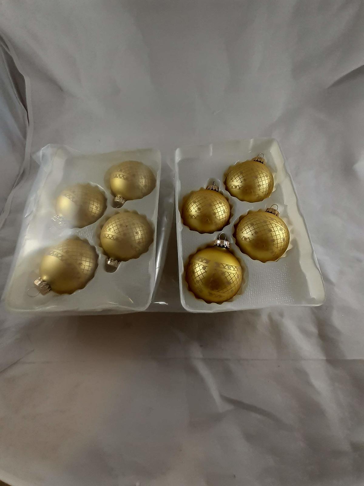 Set of 8 Classic Krebs Mercury Glass Christmas Ornaments 2.5" Yellow Gold with G