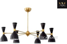 NauticalMart 6 Light Stilnovo Style Raw Brass Chandelier Light Fixture (Black)
