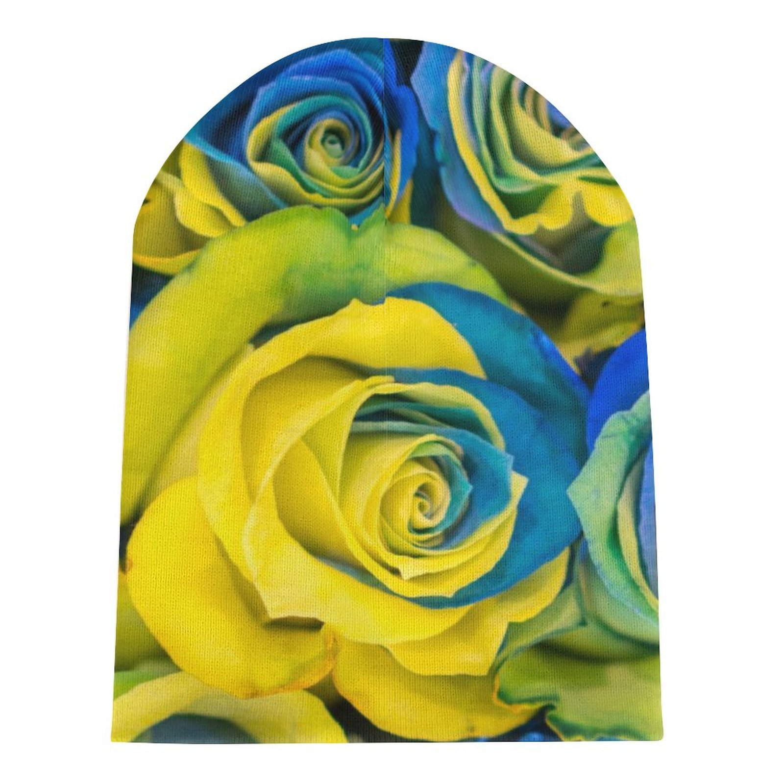 Colorful flowers floral rose blue yellow mandala beanie hats for men women warm winter knitting cap spring autumn.