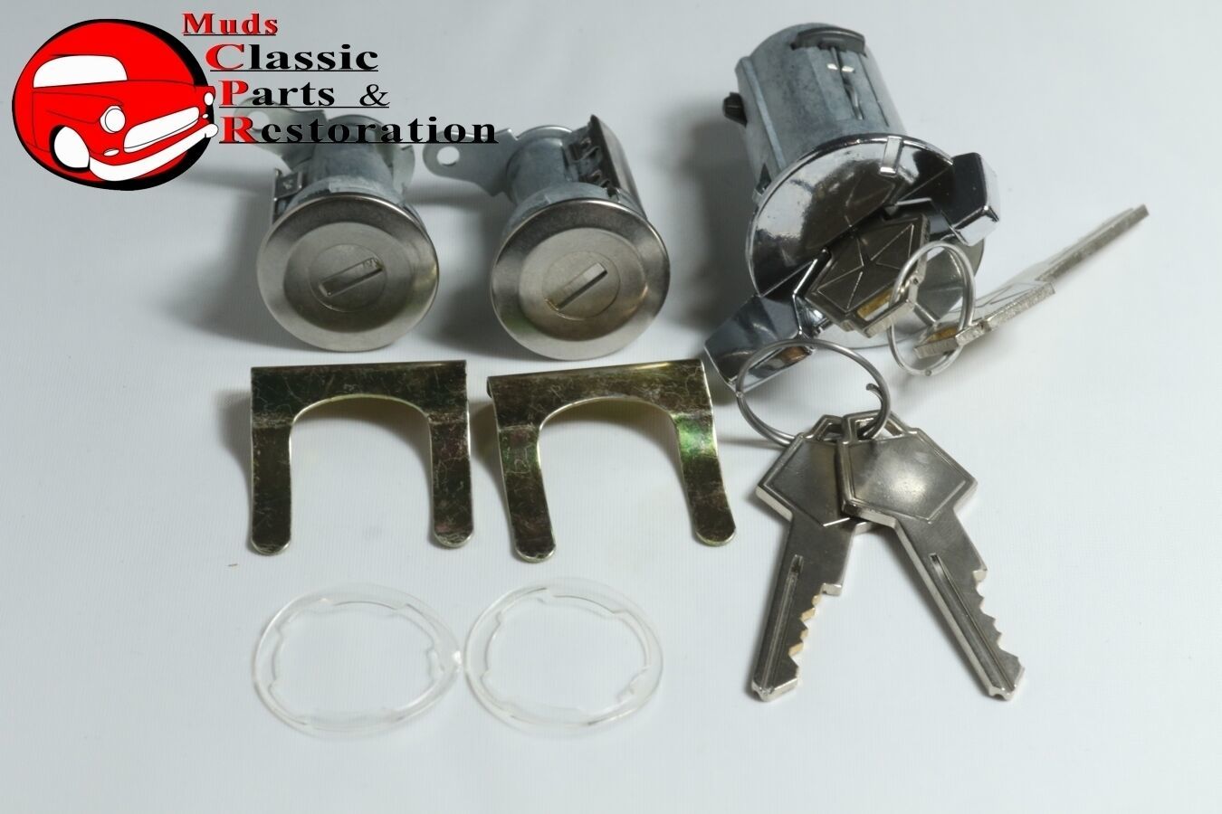 Coded set of ignition door locks w/pawls, retaining brackets, gaskets; Fits 72-74 Challenger