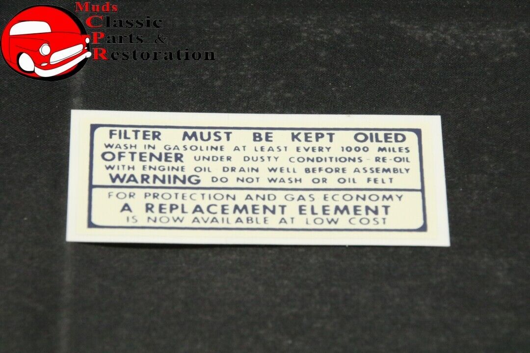 39 40 41 Ford Dry Style Air Cleaner Decal