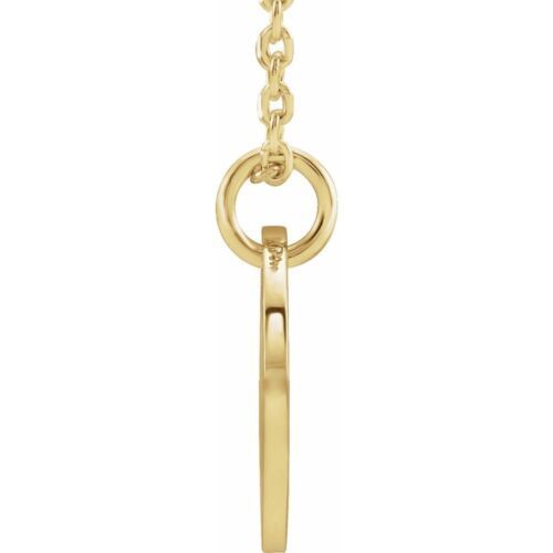This adorable and stylish round disc with cut-out initial 'G' pendant is crafted of 14K Yellow Gold and suspends from a matching cable chain that measures 16-18 In ches long. The chain secures with a spring ring clasp.