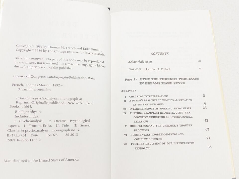 DREAM INTERPRETATION: A NEW APPROACH (CLASSICS IN By Thomas Morton French HC added to cart.
