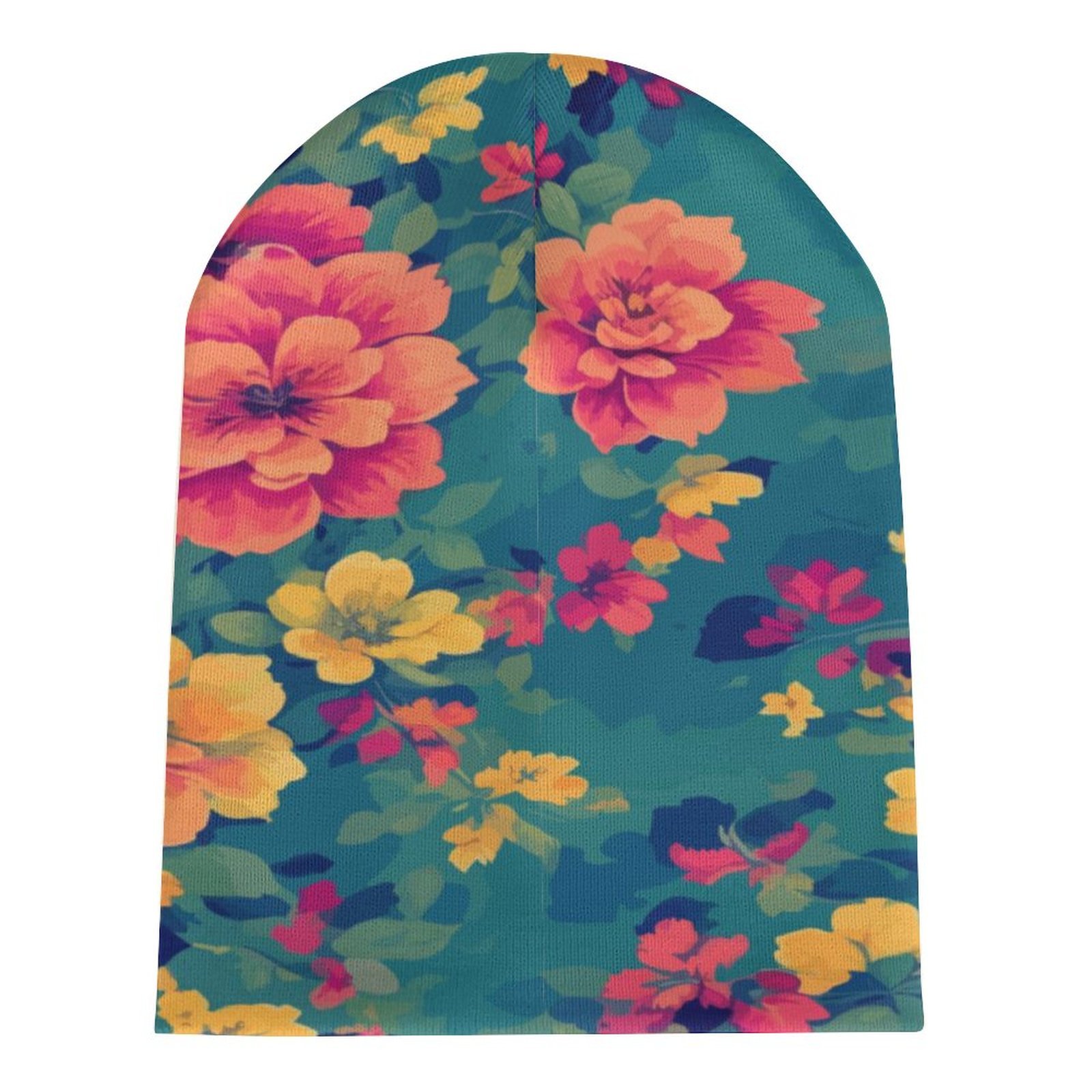 Colorful flowers retro floral skull leaves beanie hats for men women warm winter knitting cap spring autumn.