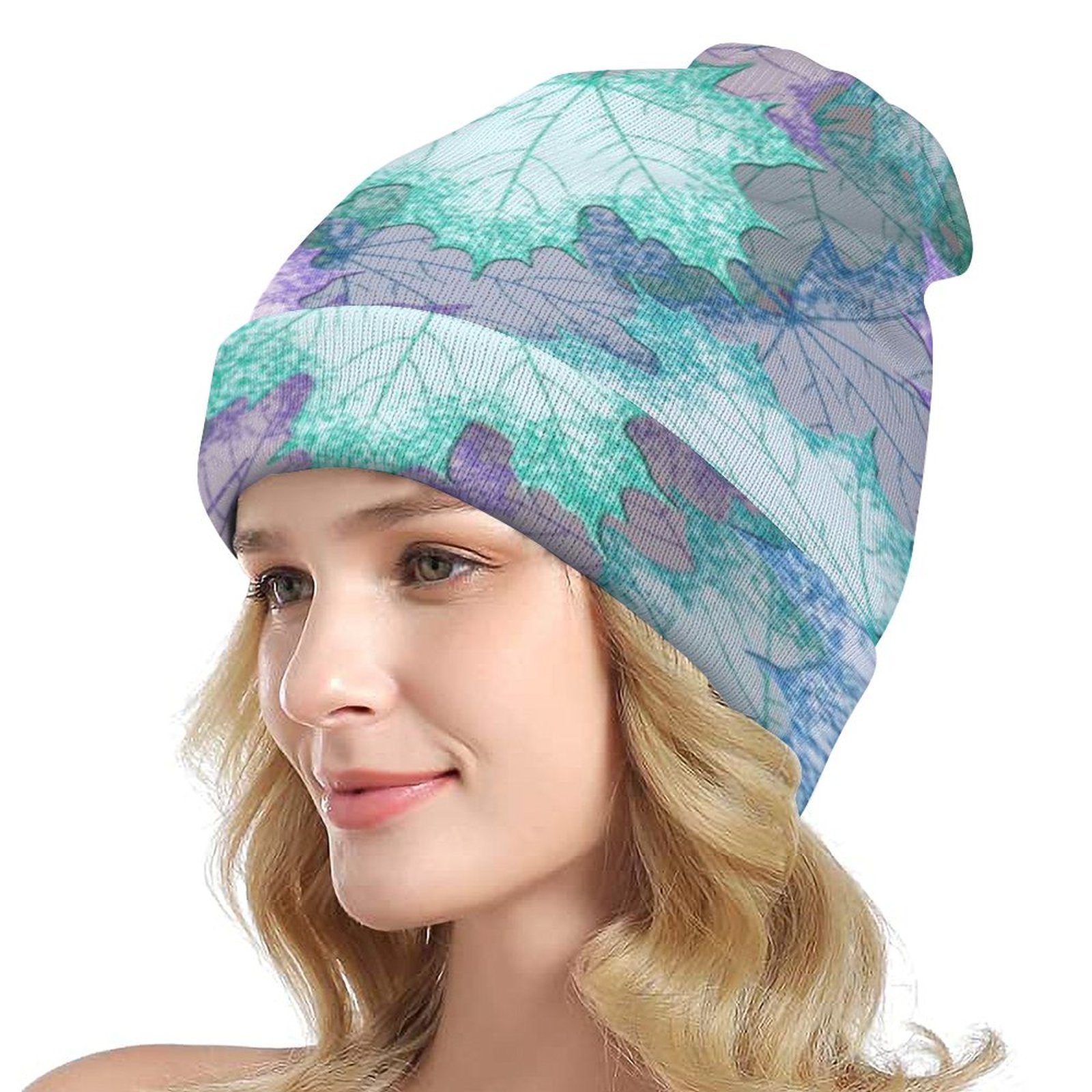 Mondxflaur Colorful Leaf Winter Beanie Hats Warm Men Women Knit Caps for Adults