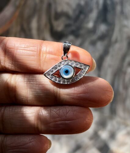 Artisan Crafted 925 Silver Evil Eye Protection Pendant, Amulet Nazariya, Mother of Paerl 1 Pc Jewelry, Eye Shape, Handmade, Handcrafted