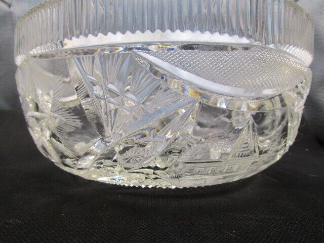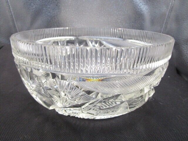 American Brilliant USA crystal cut round bowl planter center piece [a5]