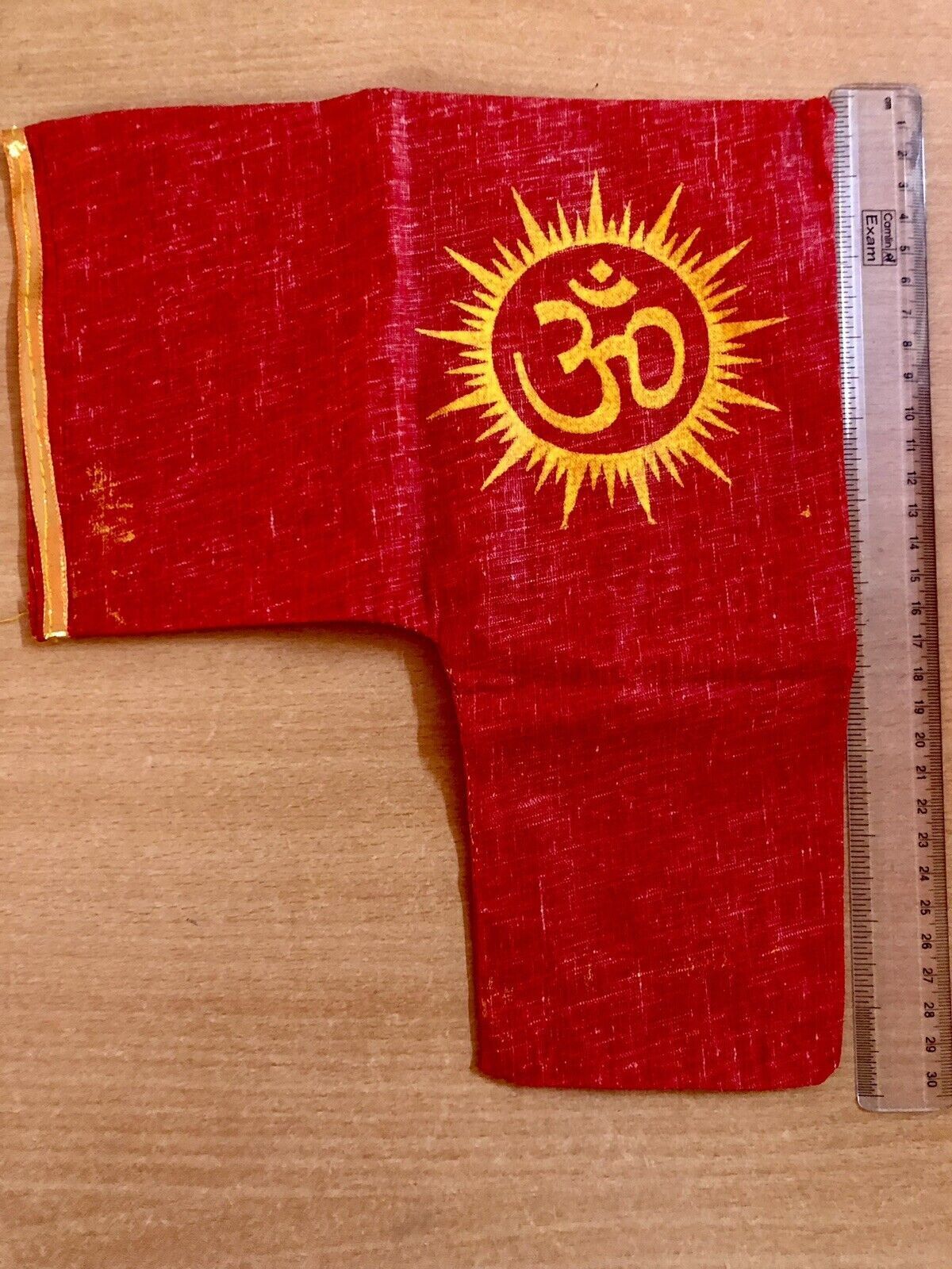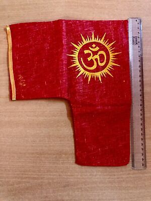 Traditional L Shape Gomukhi Gomukh Jaap Japa Prayer Bag for Rosary Prayer Beads, Yoga, Temple, Meditation, Red color, Om Aum Print