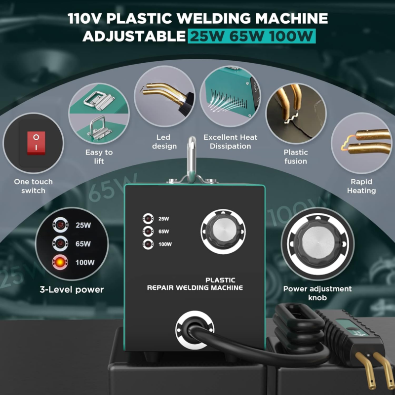 [3 Adjustable Power Levels] The plastic repair welder has 3 adjustable power levels, 25W, 65W,100W, so you can set the power of the welder to improve the welding process according to different applications. The maximum output power is 100W with 1-2s fast heat-up, which can improve almost all types of thermoplastic repair without damaging the car and plastic surface, very strong.