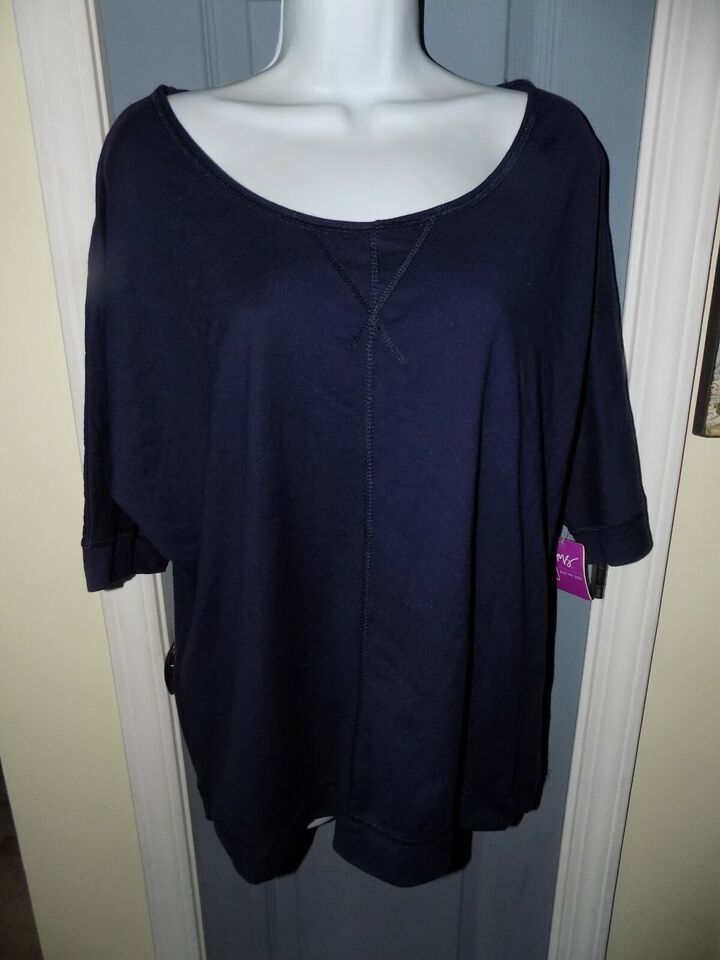 JUST MY SIZE Navy Blue Short Sleeve Crew Tee 1X (16W) Women's NEW