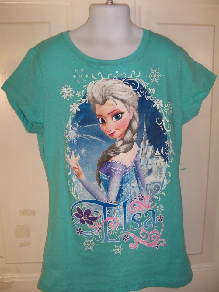 Disney Frozen Elsa Aqua Short Sleeve T-shirt Girl's NEW HTF