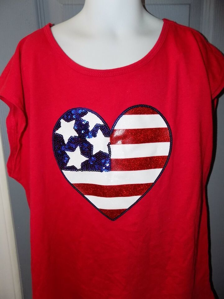 The Children's Place USA Red Sequin Flag Heart Shirt Size 10/12 (L) Girl's NEW