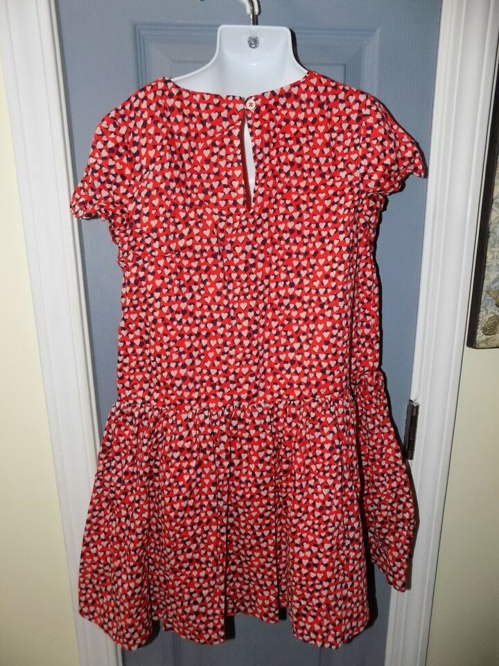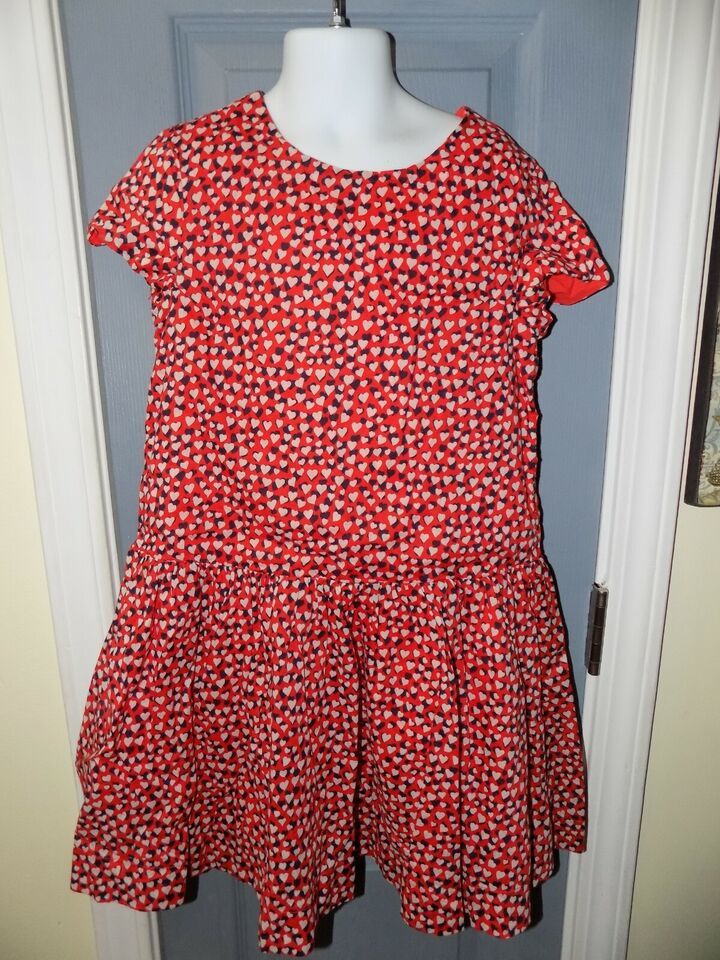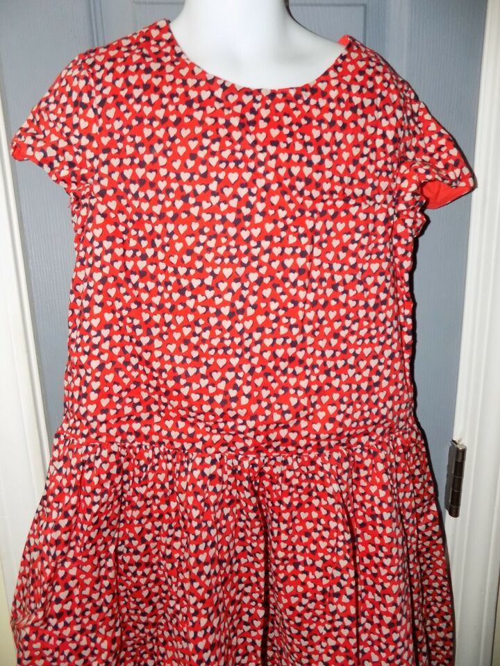 Crewcuts Red/Black/White Hearts SS Dress Size 8 Girl's EUC