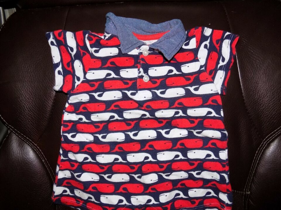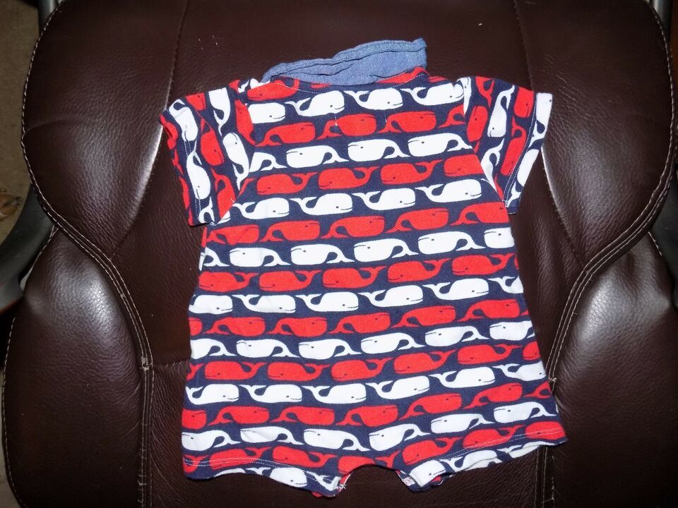Mud Pie Whale Romper Outfit Red White Blue Beach Summer One Piece Size 6/9 Month
