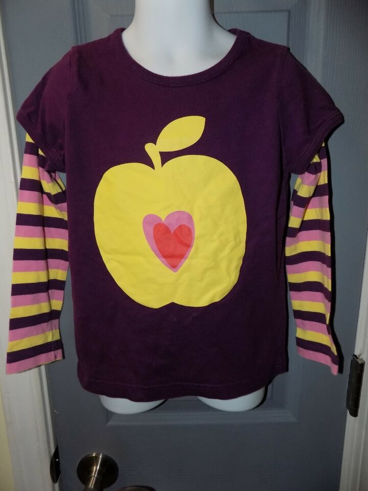 Mini Boden Apple Heart Shirt Long Sleeved Size 5/6Y Girl's EUC