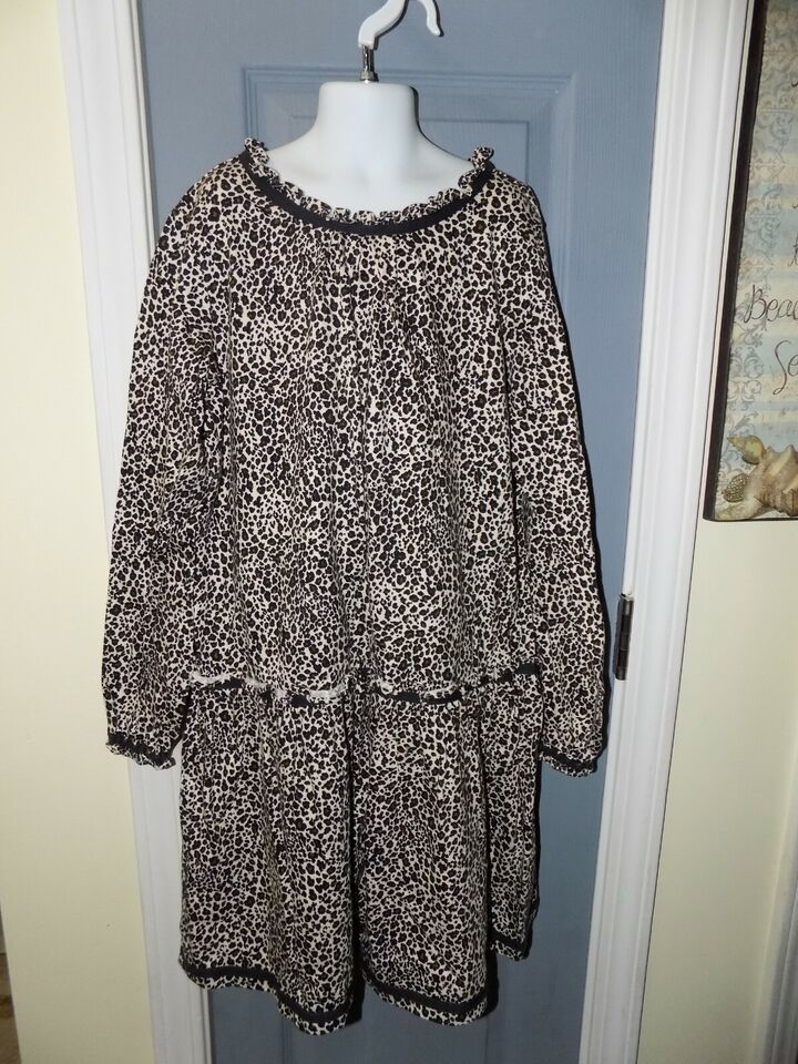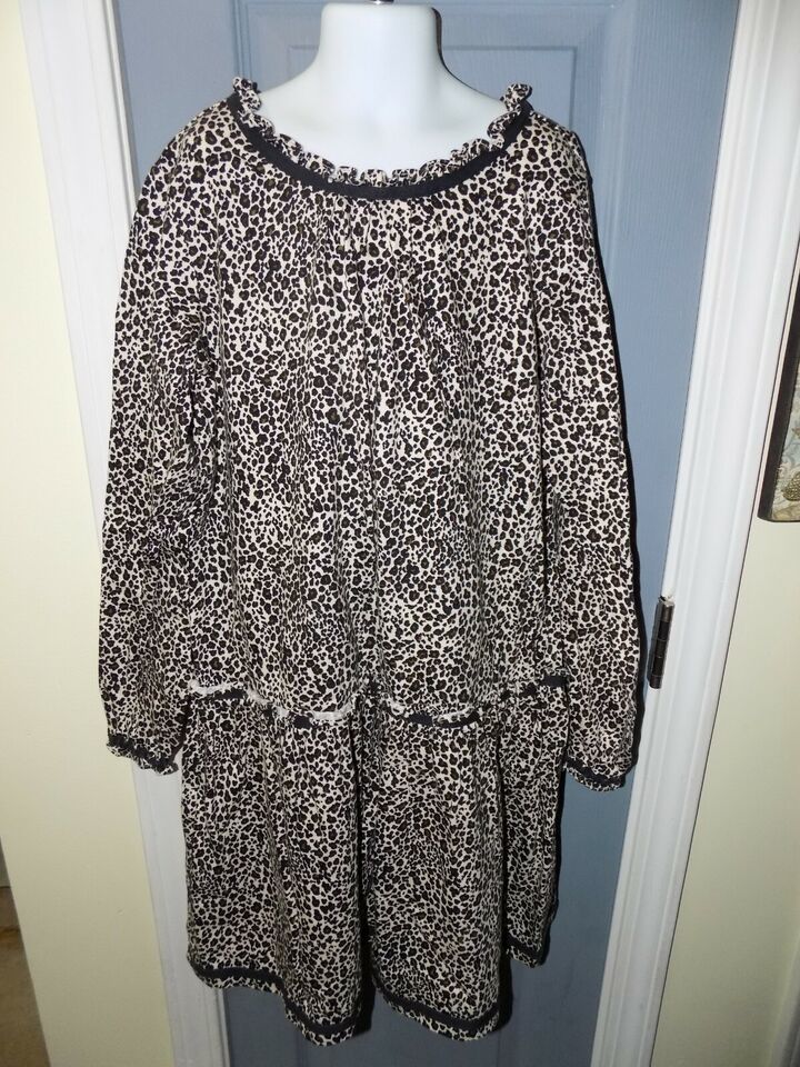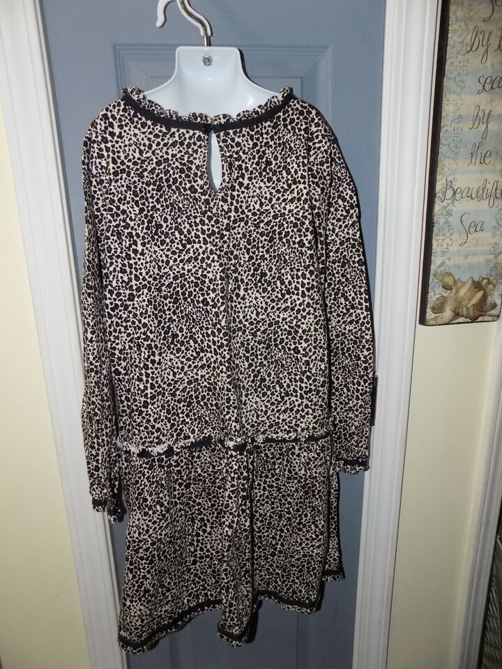 Hanna Andersson Leopard Animal Cheetah Print Long Sleeve Dress Size 12 (150) EUC