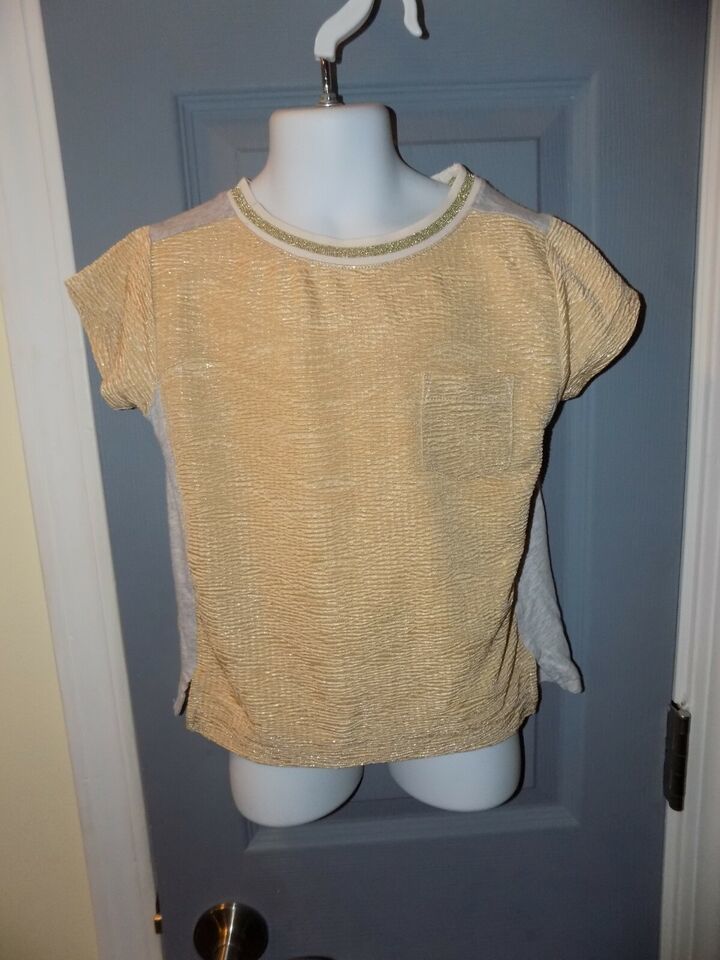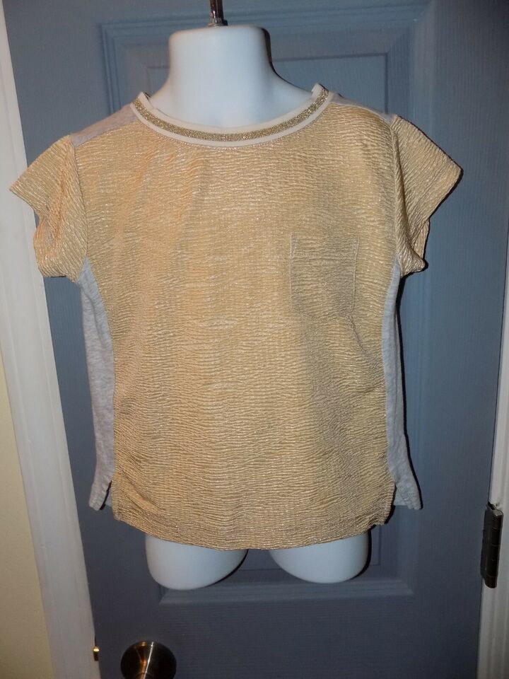 Crewcuts Gold Gray Metallic Cotton T-Shirt Size 4/5 Girl's EUC