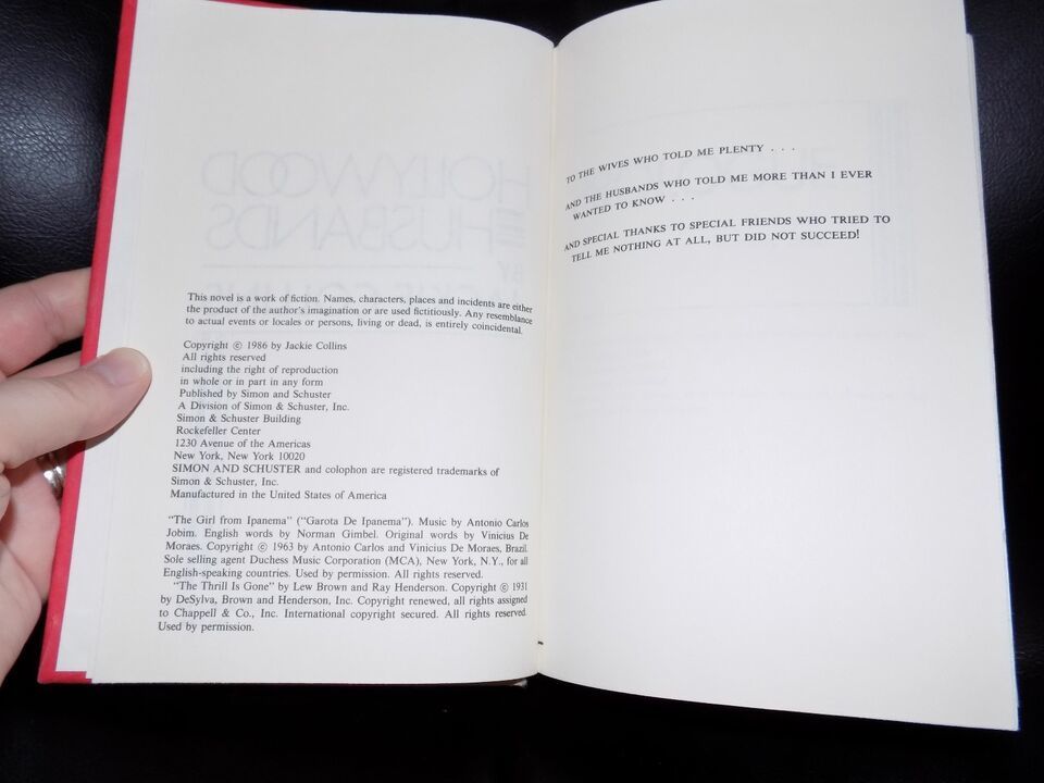JACKIE COLLINGS HOLLYWOOD HUSBANDS HARDCOVER EUC