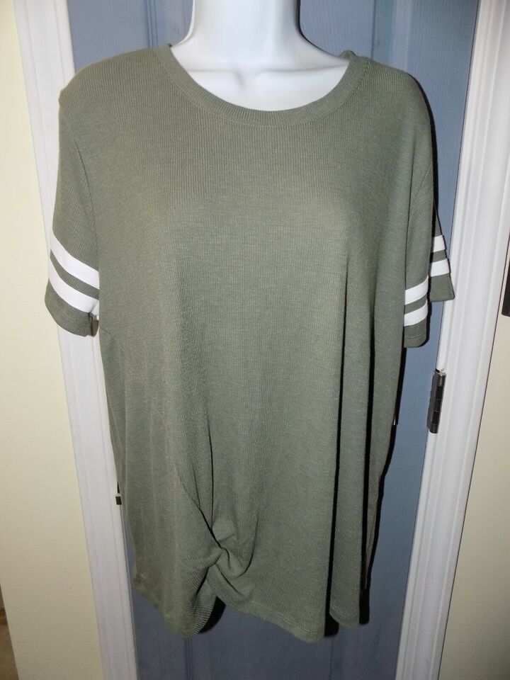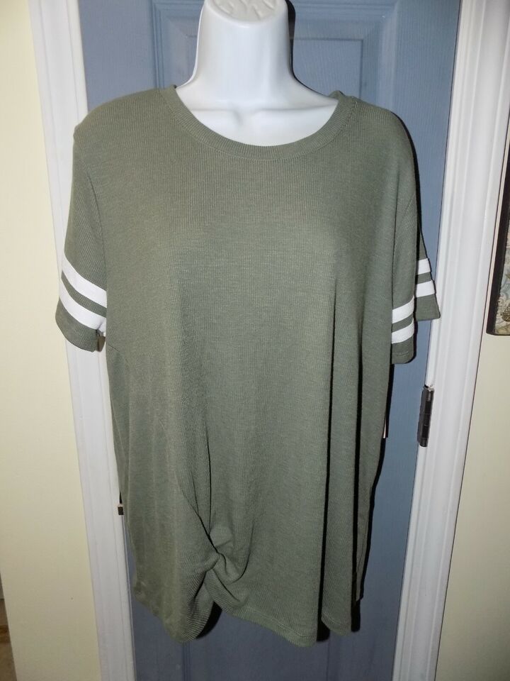 So Galvanized Green Short Sleeve Varsity Twist Front Shirt Size XXL Women's NEW