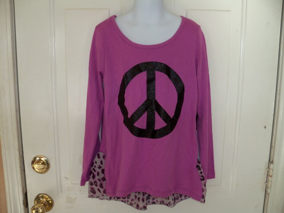 Jordache Iris Orchid Peace Sign Chiffon Back L/S Top Size M (7/8) Girl's NEW