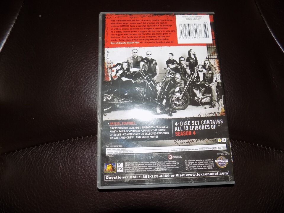 Sons of Anarchy: Season 4 (DVD, 2012, 4-Disc Set) EUC