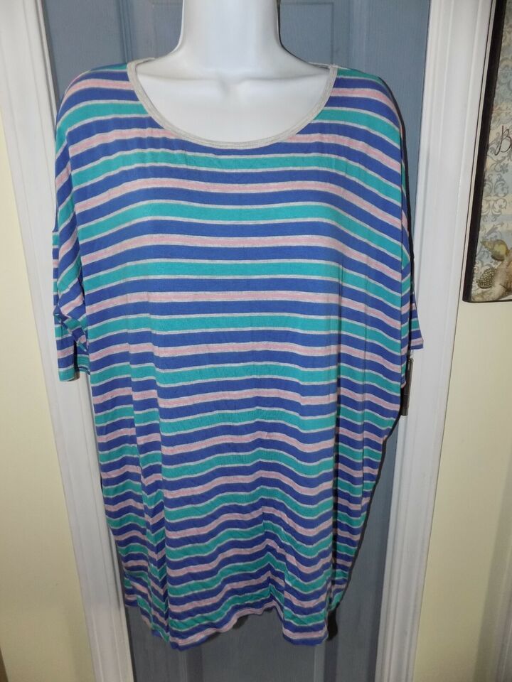 LuLaRoe Irma Striped Blue/Purple/Pink/Gray Print Size XL Women's NWOT